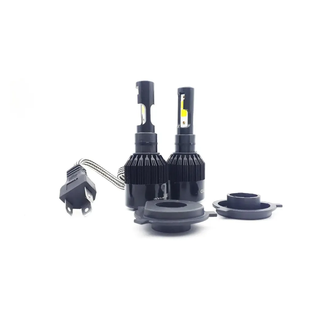 O kit aqui apresentado é constituído por um par de lâmpadas Super Led 6000K de encaixe H4 com feixe de luz emitido na cor branca com tom totalmente branco.